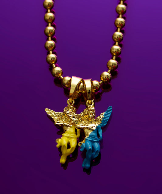Gold Enamel Dipped Angel Ball Chain Necklace