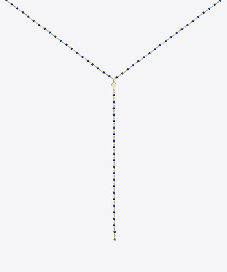 Beaded blue stones on silver with gold vermeil plating chain.