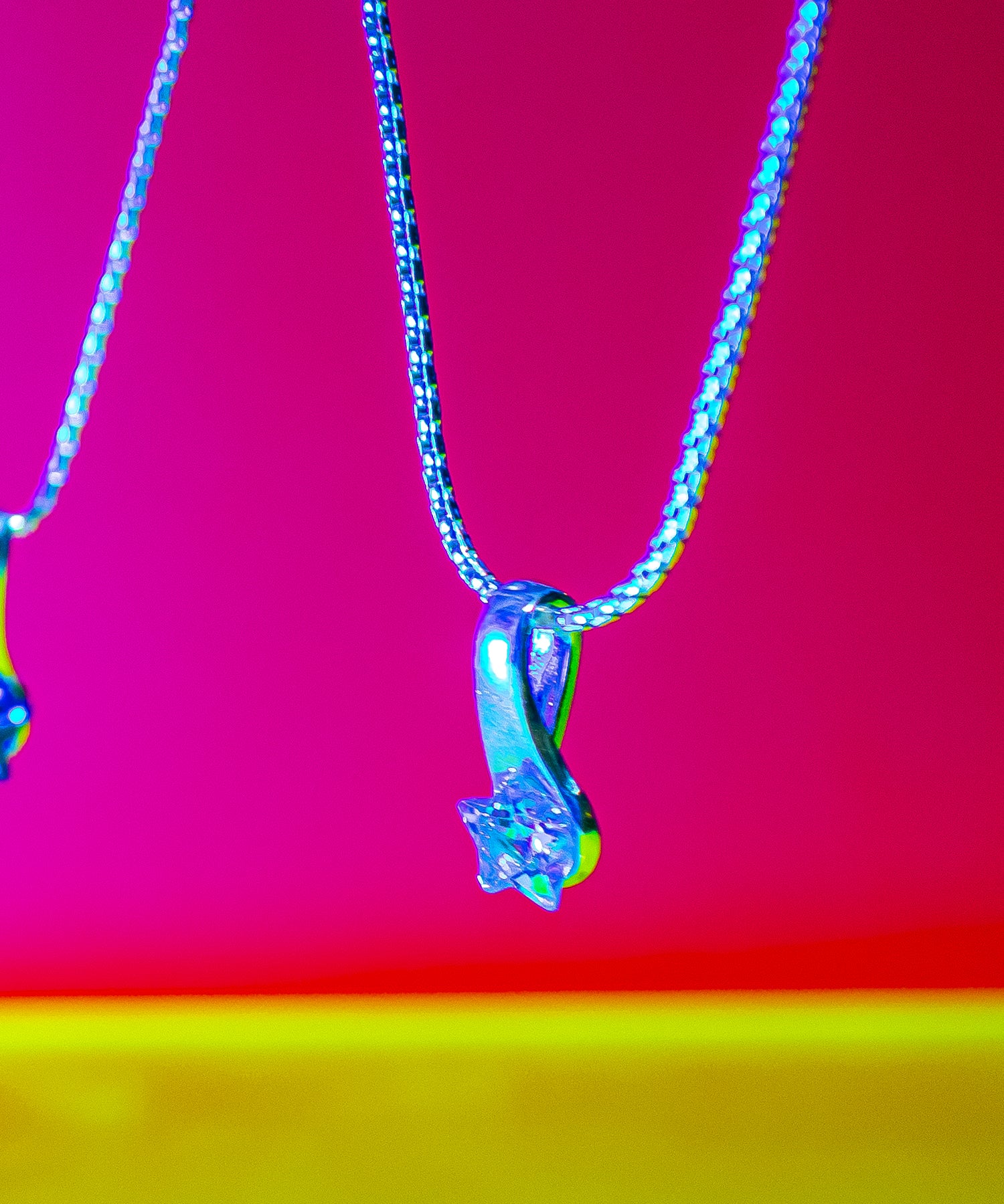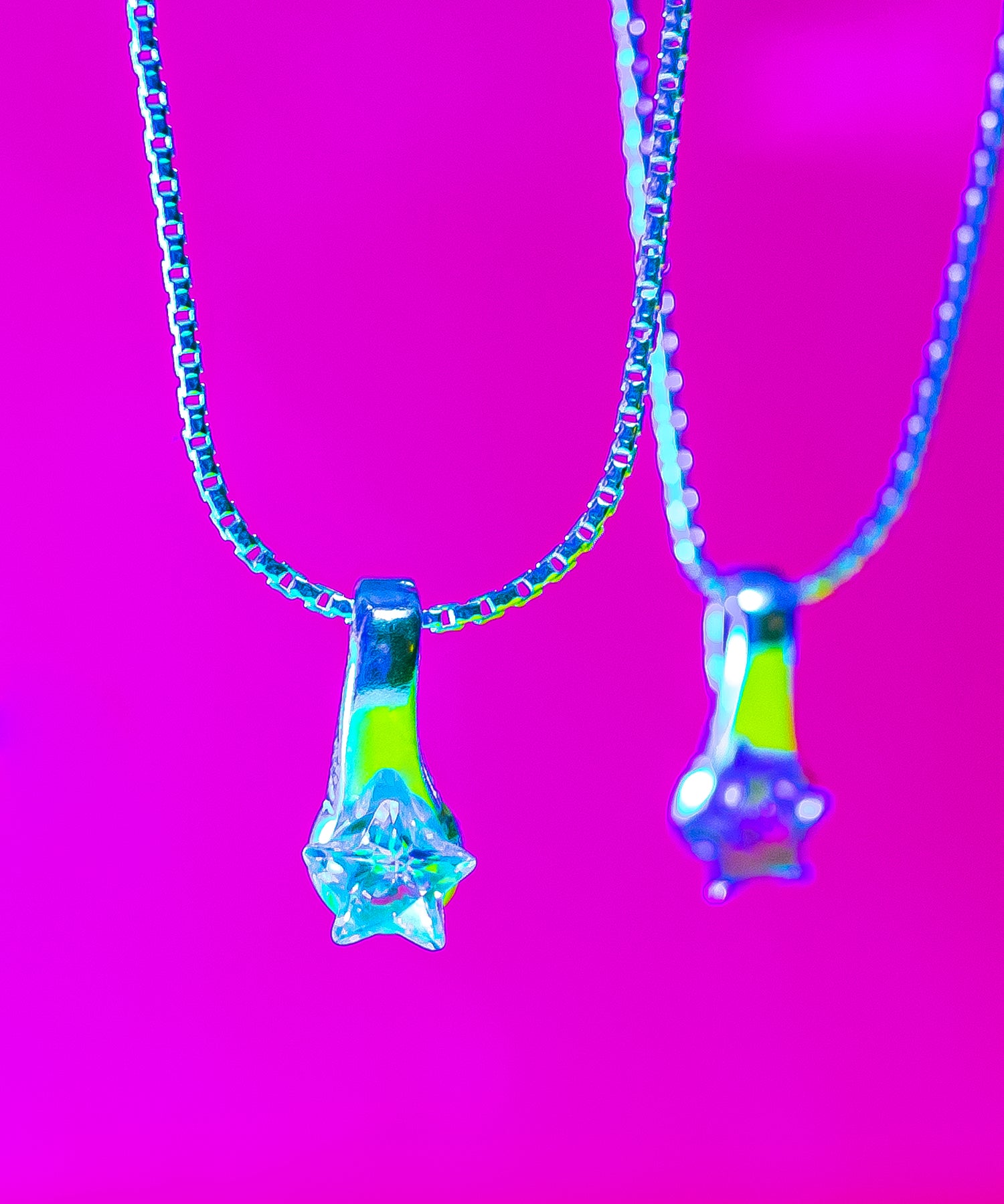 A light pink star cut CZ stone on a sterling silver pendant and box chain.